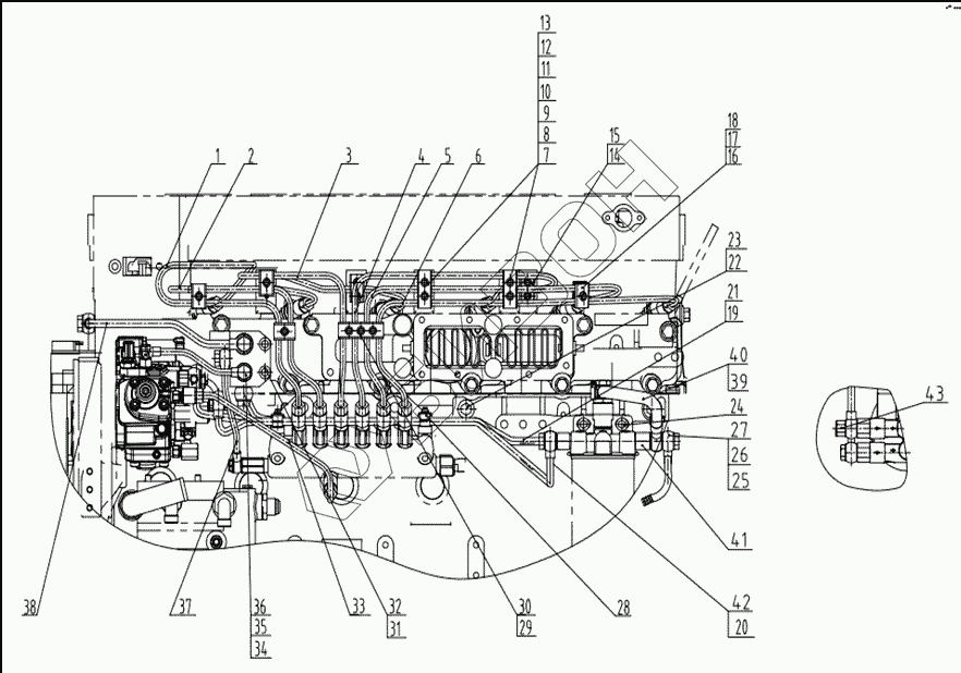 | 42 | D26C-018-900 | Fuel return pipe assy, fuel injection pump |