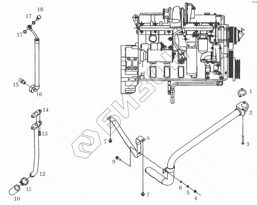 | 12 | D19-002-14a | Сварная трубка возврата масла, турбокомпрессор |