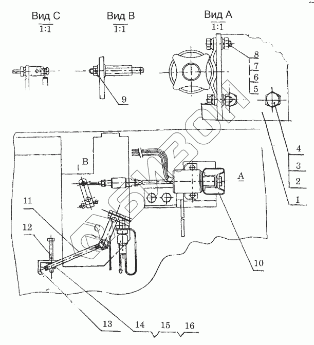 | 1 | D59-101-08 | Кронштейн, клапан соленоида отключения |