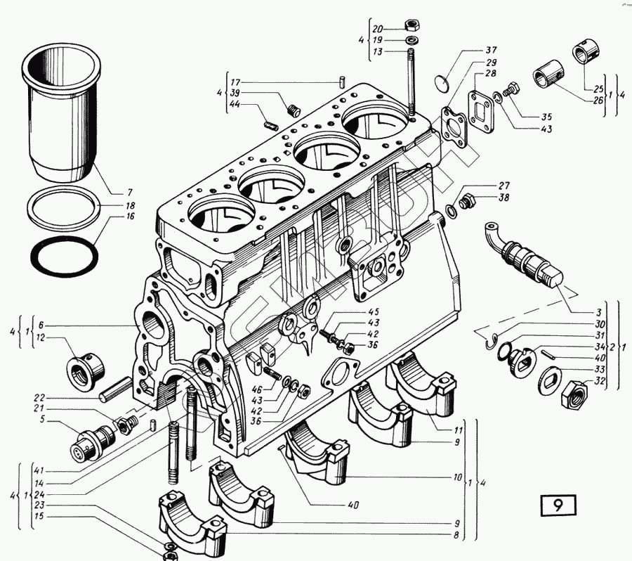 | 9 | 14-0105-3А | Крышка второго и четвертого коренных подшипников |