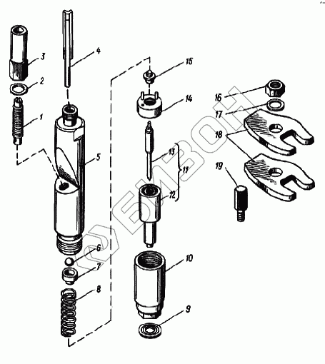 Графический каталог запасных частей к технике: ТМЗ Дизели ТМЗ-8421 - 85227. Форсунка