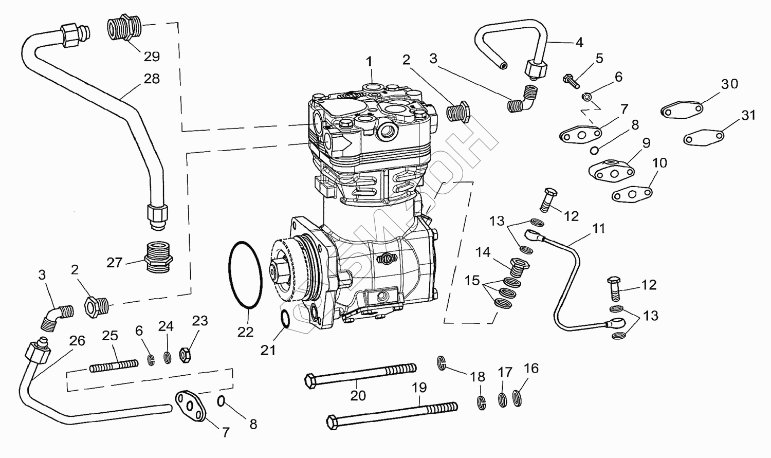 | 8481.3509010 | 8481.3509010 | Компрессор пневматического тормоза в сборе с уплотнительными кольцами, ввертышами, угольниками |
