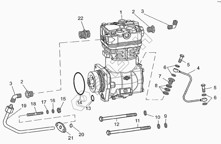 8481.3509010 8481.3509010 Компрессор пневматического тормоза в сборе с уплотнительными кольцами, ввертышами, угольниками