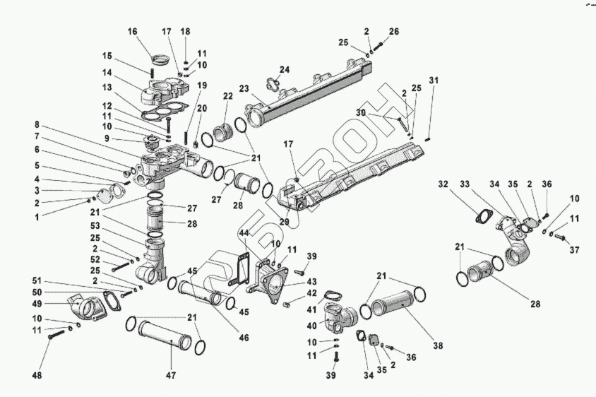 | 14 | 842.1303126 | Патрубок водяной коробки (в сборе) |