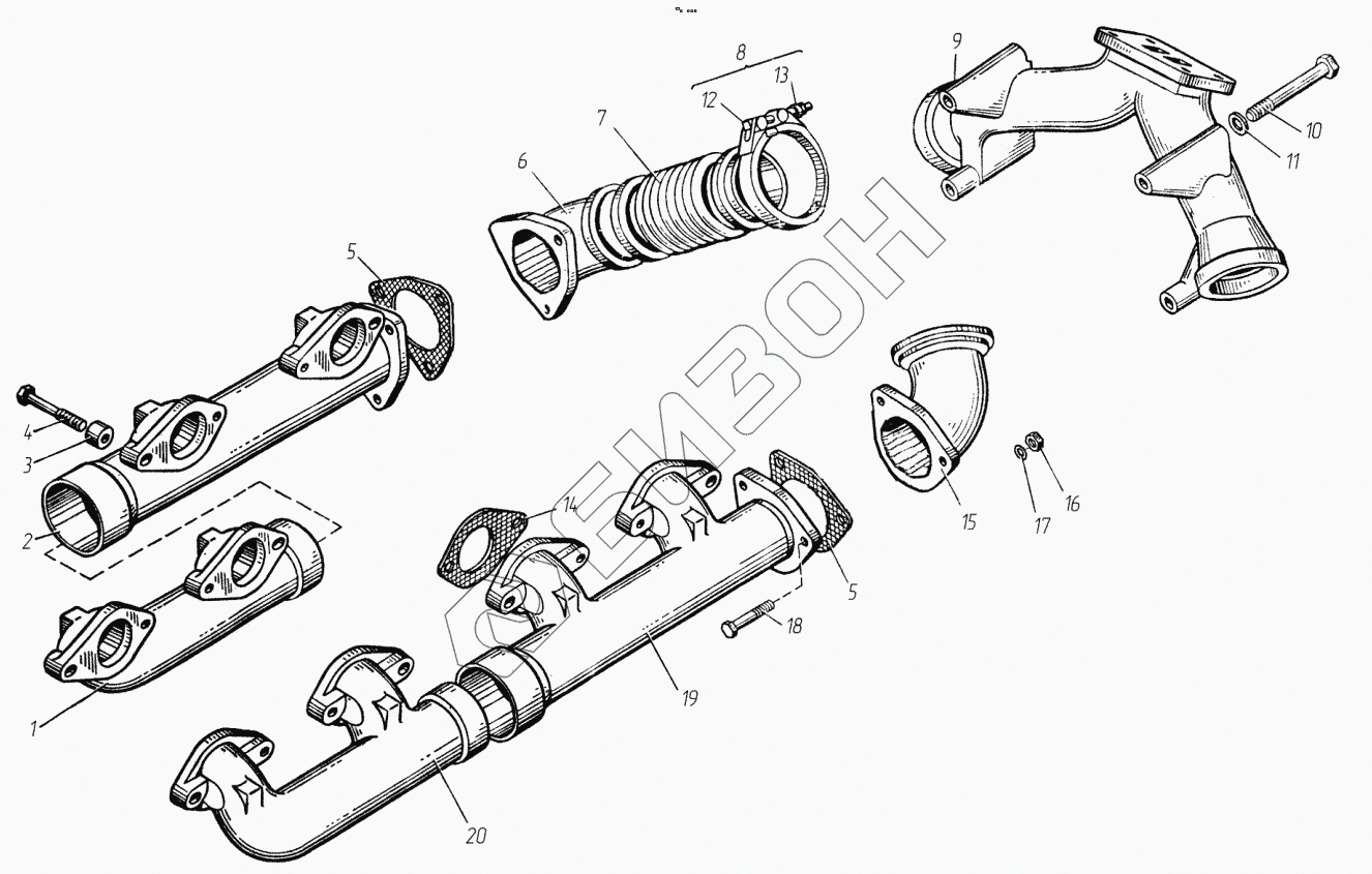 | 19 | 8423.1008030 | Коллектор выпускной задний левый |