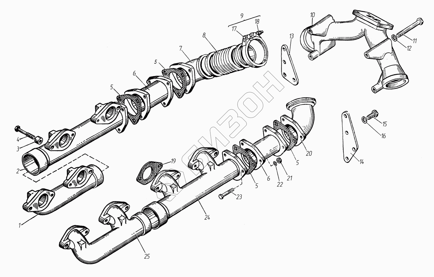 | 24 | 8423.1008030 | Коллектор выпускной задний левый |
