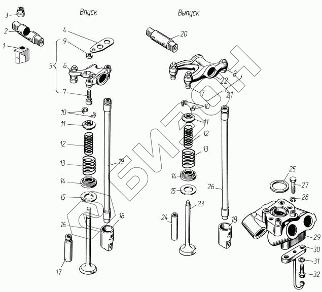 Графический каталог запасных частей к технике: ТМЗ-8492.10-033. Клапаны и толкатели