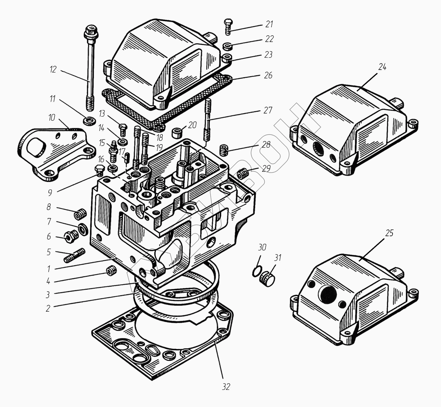 Графический каталог запасных частей к технике: ТМЗ-8522.10. Головка цилиндра