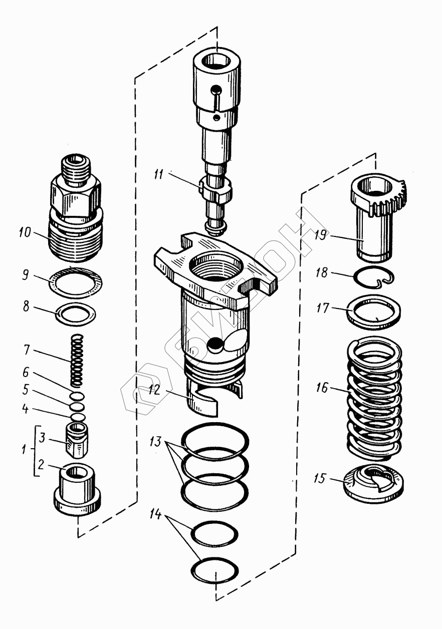 Графический каталог запасных частей к технике: ТМЗ-8522.10. Секция топливного насоса высокого давления