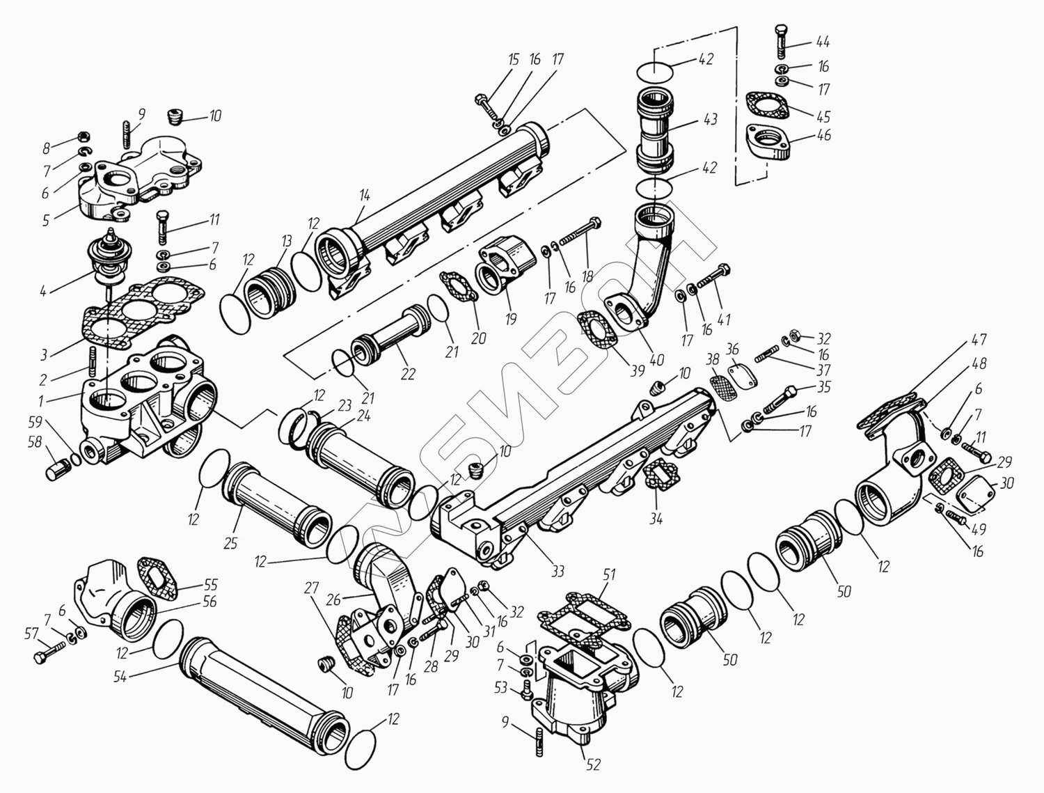 | 5 | 842.1303126 | Патрубок водяной коробки (в сборе) |