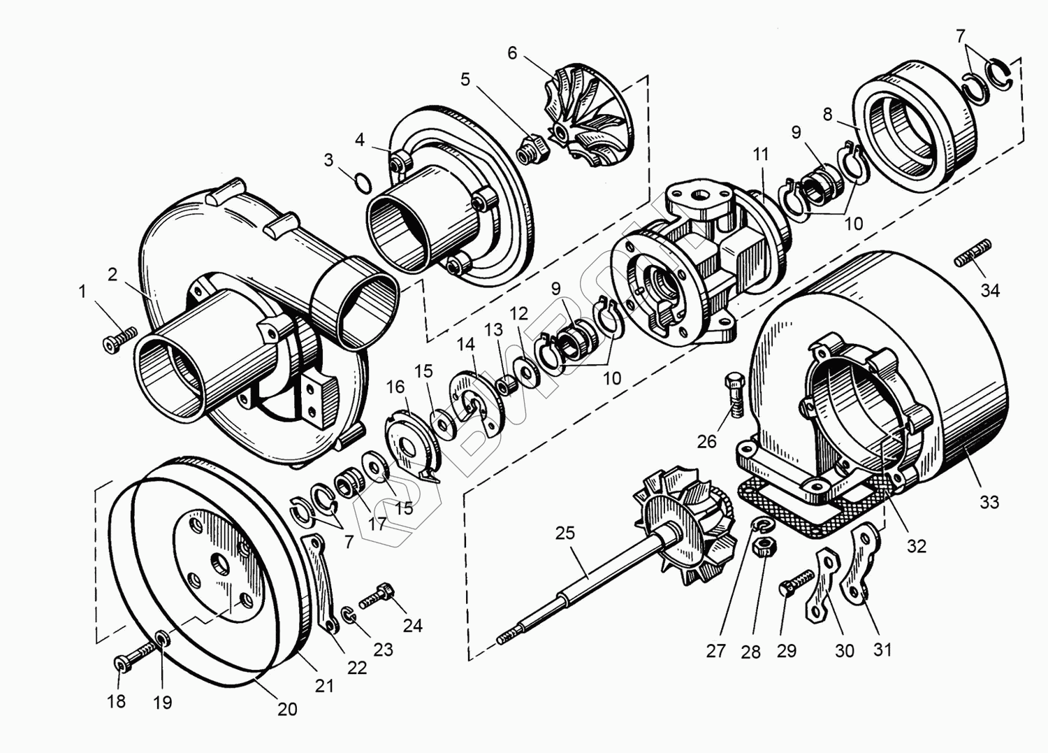 Графический каталог запасных частей к технике: ТМЗ-8522.10. Турбокомпрессор(УСТРОЙСТВО)