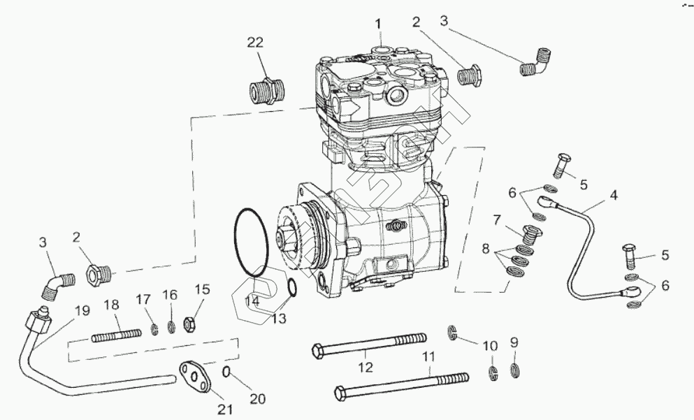 8481.3509010 8481.3509010 Компрессор пневматического тормоза в сборе с уплотнительными кольцами, ввертышами, угольниками