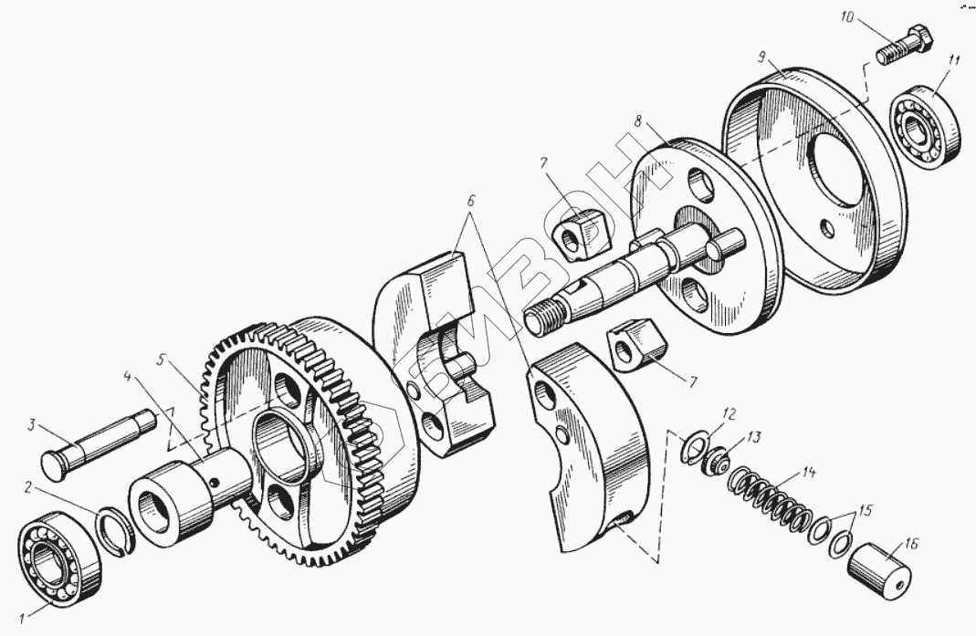 | 6 | 840.1121032-20 | Груз муфты с осью |