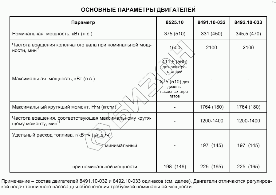 Графический каталог запасных частей к технике: ТМЗ-8525.10. Основные параметры двигателей