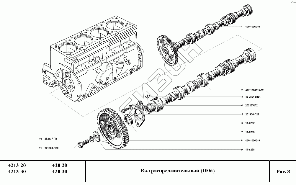 | 8 | 420.1006019 | Шестеpня pаспpеделительного вала с отметчиком в сборе |