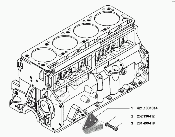 | 1 | 4215.1001014 | Кронштейн крепления подушки передней опоры двигателя к блоку |