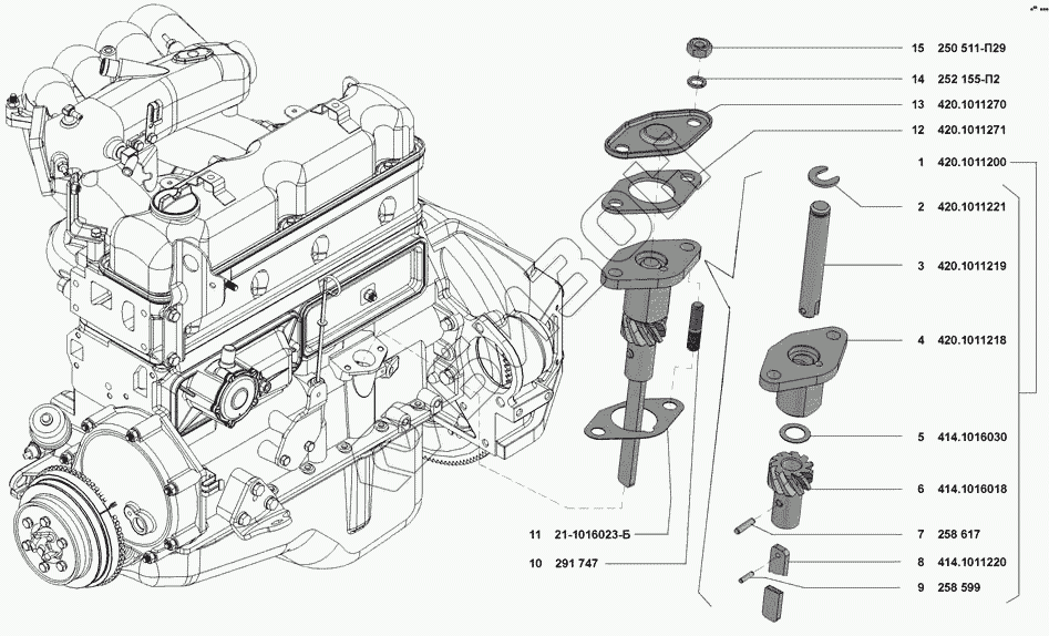 | 13 | 420.1011270 | Крышка привода масляного насоса |