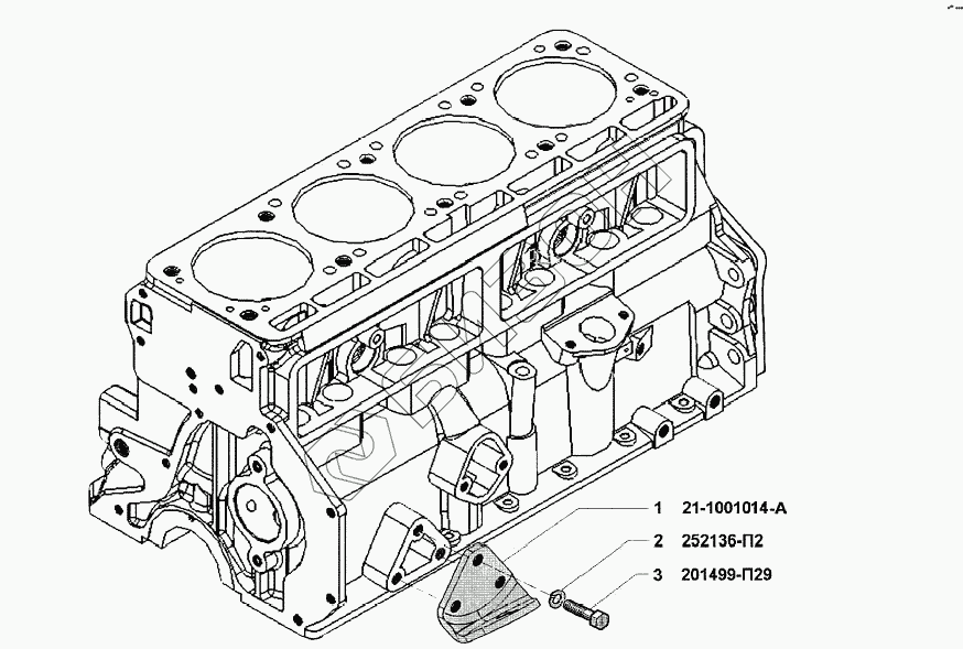 | 1 | 21-1001014-А | Кронштейн крепления подушки передней опоры двигателя к блоку |