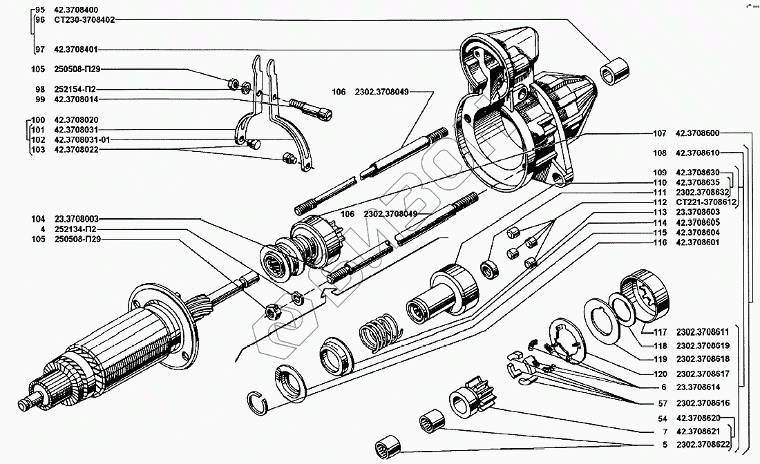 | 100 | 42.3708020 | Рычаг включения привода в сборе |