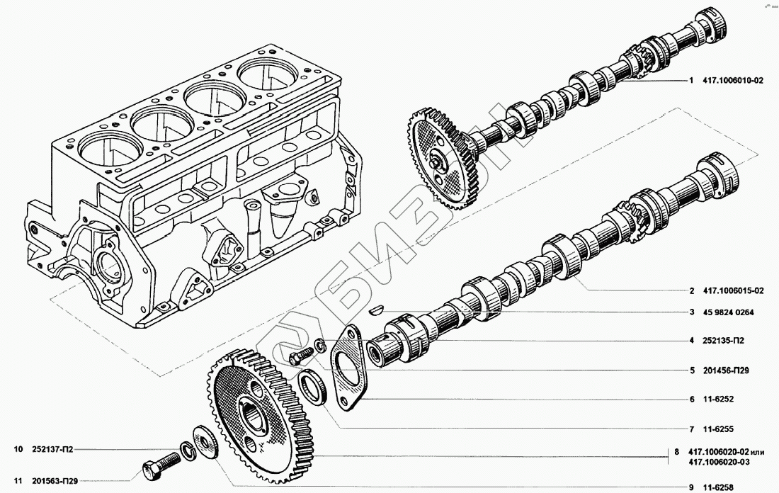 | 1 | 417.1006010-02 | Вал распределительный с шестерней в сборе |