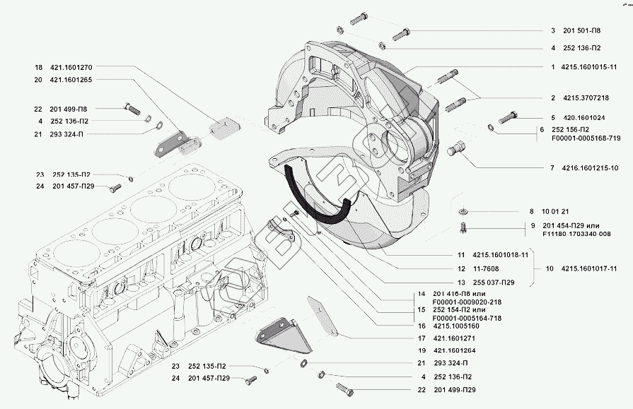 | 1 | 4215.1601015-11 | Картер сцепления, верхняя часть |