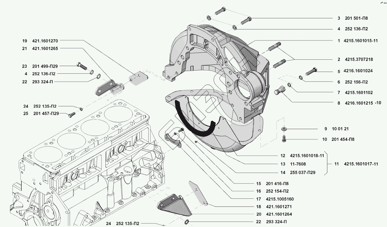 | 1 | 4215.1601015-11 | Картер сцепления, верхняя часть |