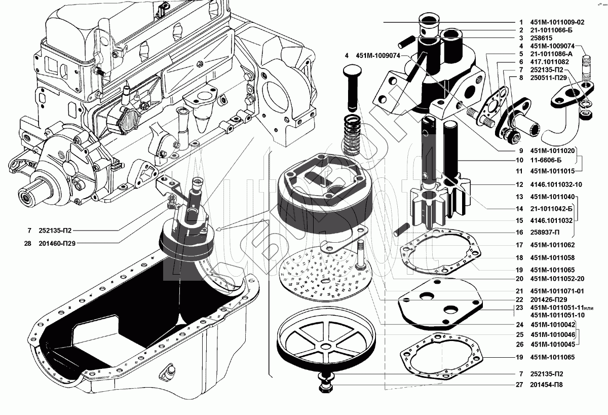 | 1 | 451М-1011009-02 | Насос масляный с маслоприемником в сборе |