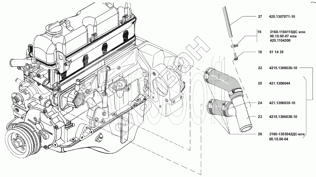 | 25 | 421.1306044 | Шланг термостата отводящий |