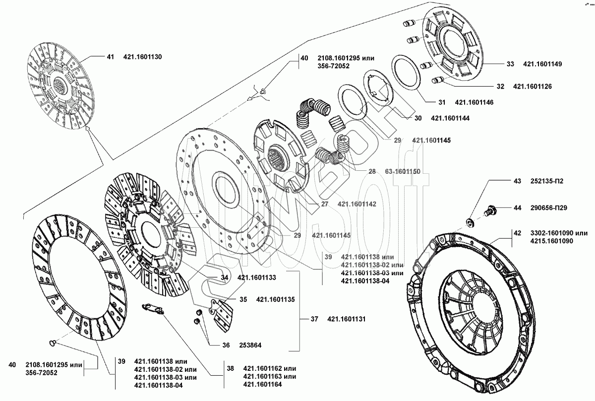 | 41 | 421.1601130 | Диск сцепления ведомый в сборе |