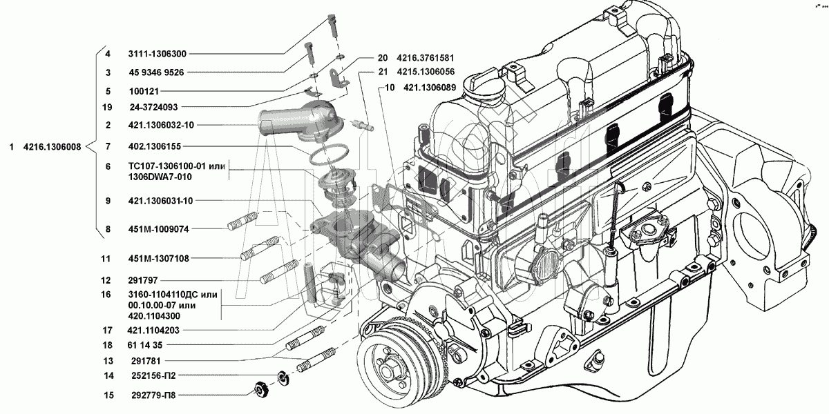 | 4 | 3111-1306300 | Болт М8 крышки термостата |
