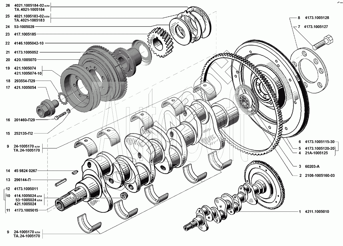 | 1 | 4211.1005010 | Вал коленчатый и маховик в сборе |