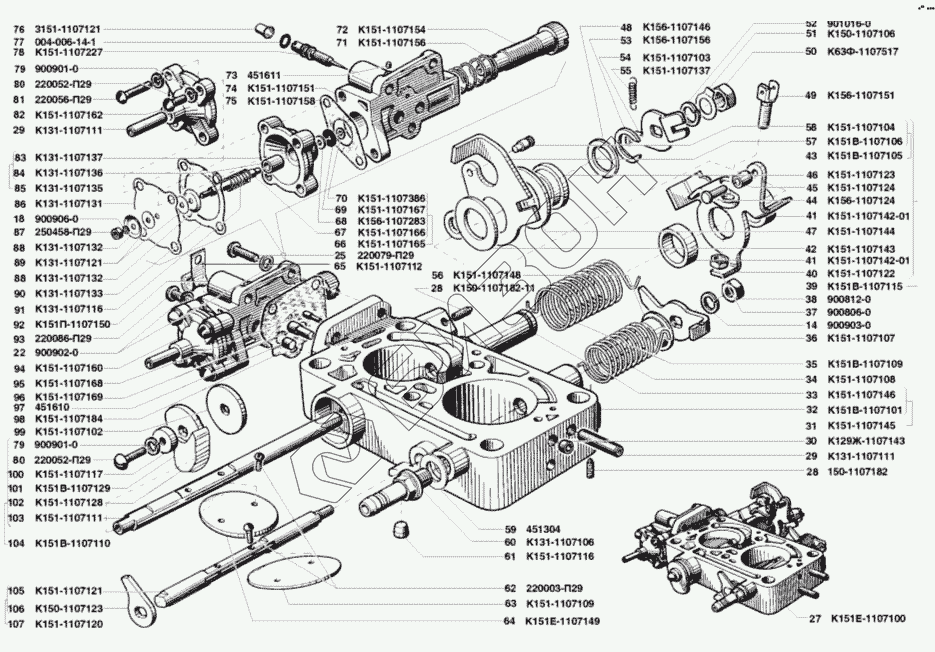 | 27 | К151Е-1107100 | Корпус смесительных камер в сборе |