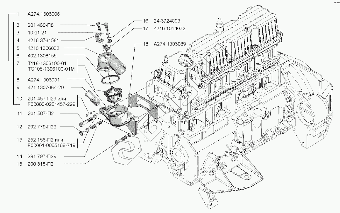 | 18 | А274.1306089 | Прокладка корпуса термостата |