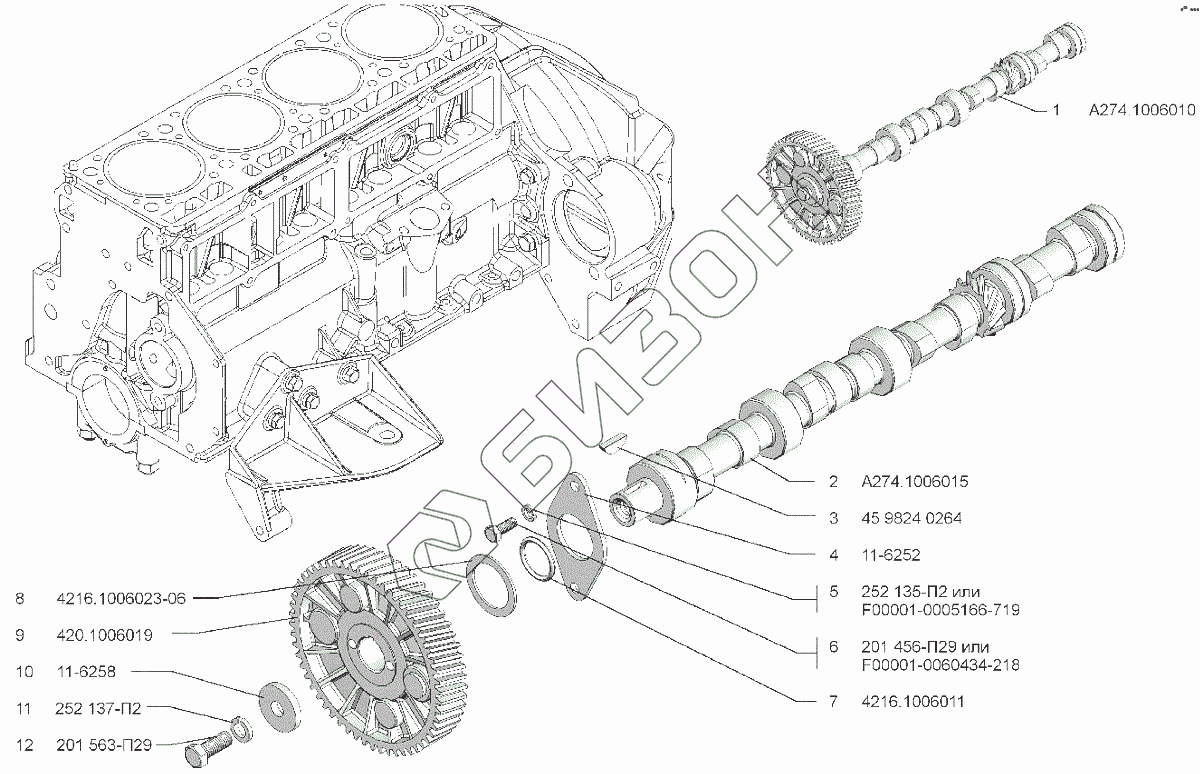 | 1 | А274.1006010 | Вал распределительный с шестерней в сборе |