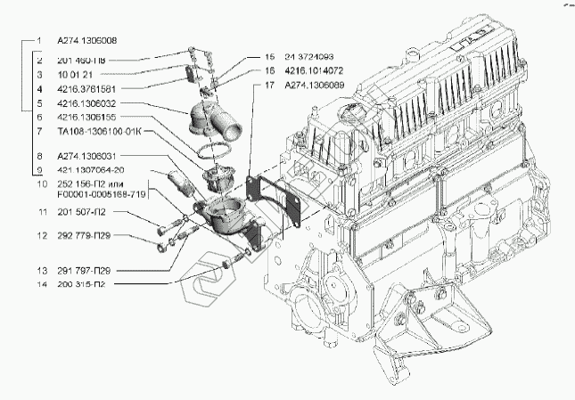| 17 | А274.1306089 | Прокладка корпуса термостата |
