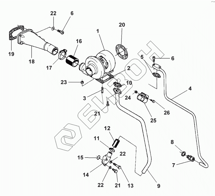 Графический каталог запасных частей к технике: Valmet 612 DSIL. TURBOCHARGER-PIPES