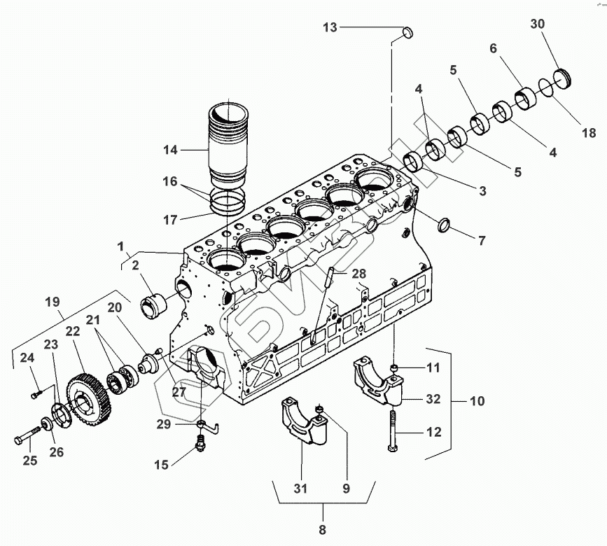 Графический каталог запасных частей к технике: Valmet 612 DSJL-290HP. CYLINDER BLOCK