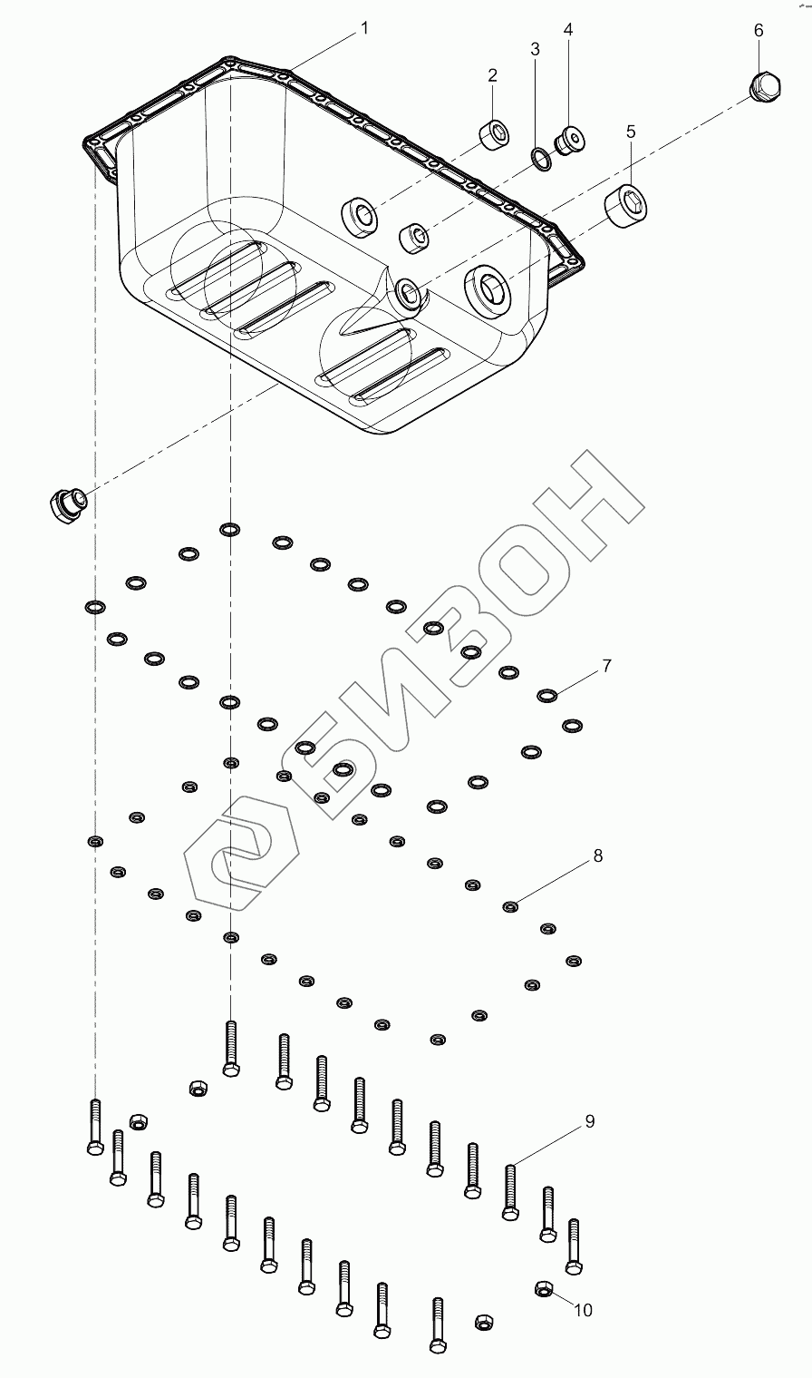Графический каталог запасных частей к технике: Weichai 4M06G17. Oil Pan Group