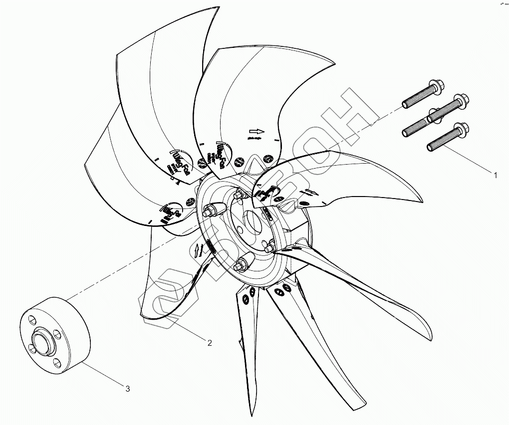 Графический каталог запасных частей к технике: Weichai 4M06G22. Fan and Hub Group