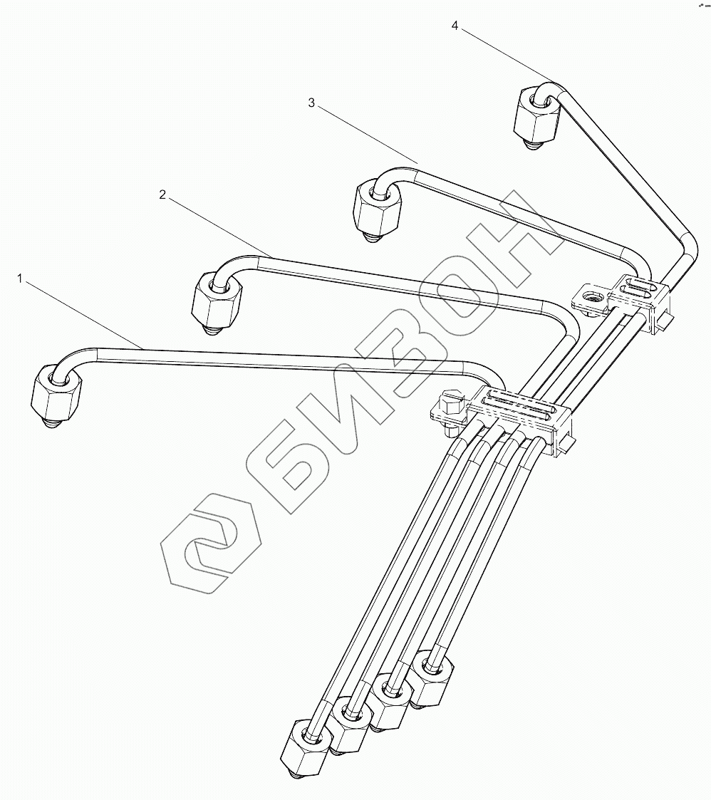 Графический каталог запасных частей к технике: Weichai 4M06G22. High-pressure Fuel Pipe Assembly