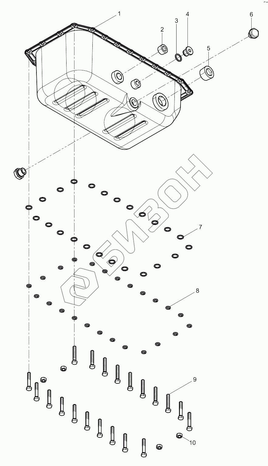 Графический каталог запасных частей к технике: Weichai 4M06G22. Oil Pan Group