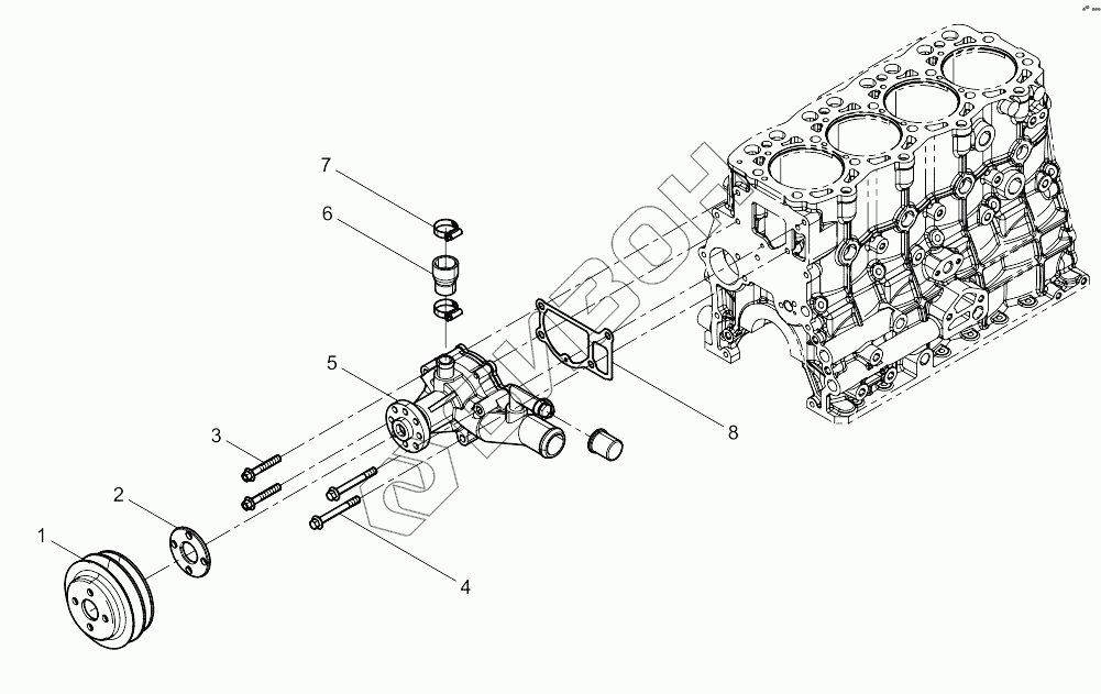 Графический каталог запасных частей к технике: Weichai 4M06G22. Water Pump Group