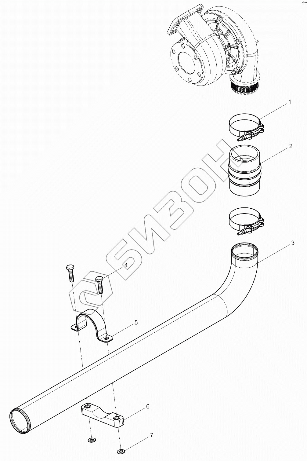 Графический каталог запасных частей к технике: Weichai 6M11 DHM11D0003. Compressor Pipe Group