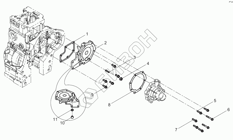 Графический каталог запасных частей к технике: Weichai 6M11 DHM11D0003. Middle Filling Block Group