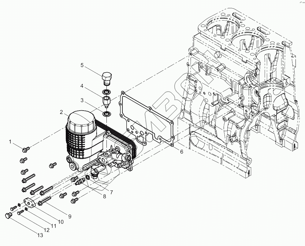 Графический каталог запасных частей к технике: Weichai 6M11 DHM11D0003. Oil Cooler Group