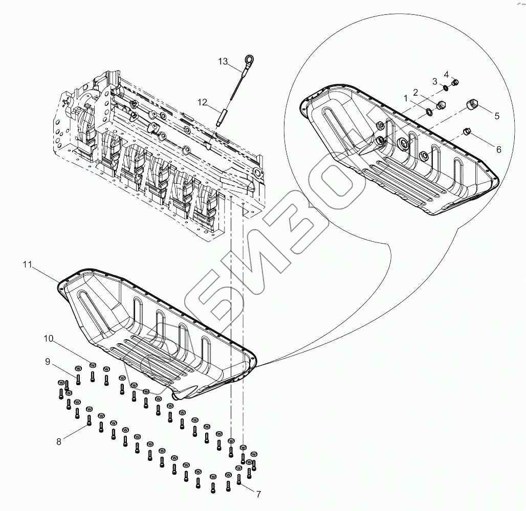 Графический каталог запасных частей к технике: Weichai 6M11 DHM11D0003. Oil Pan Assembly