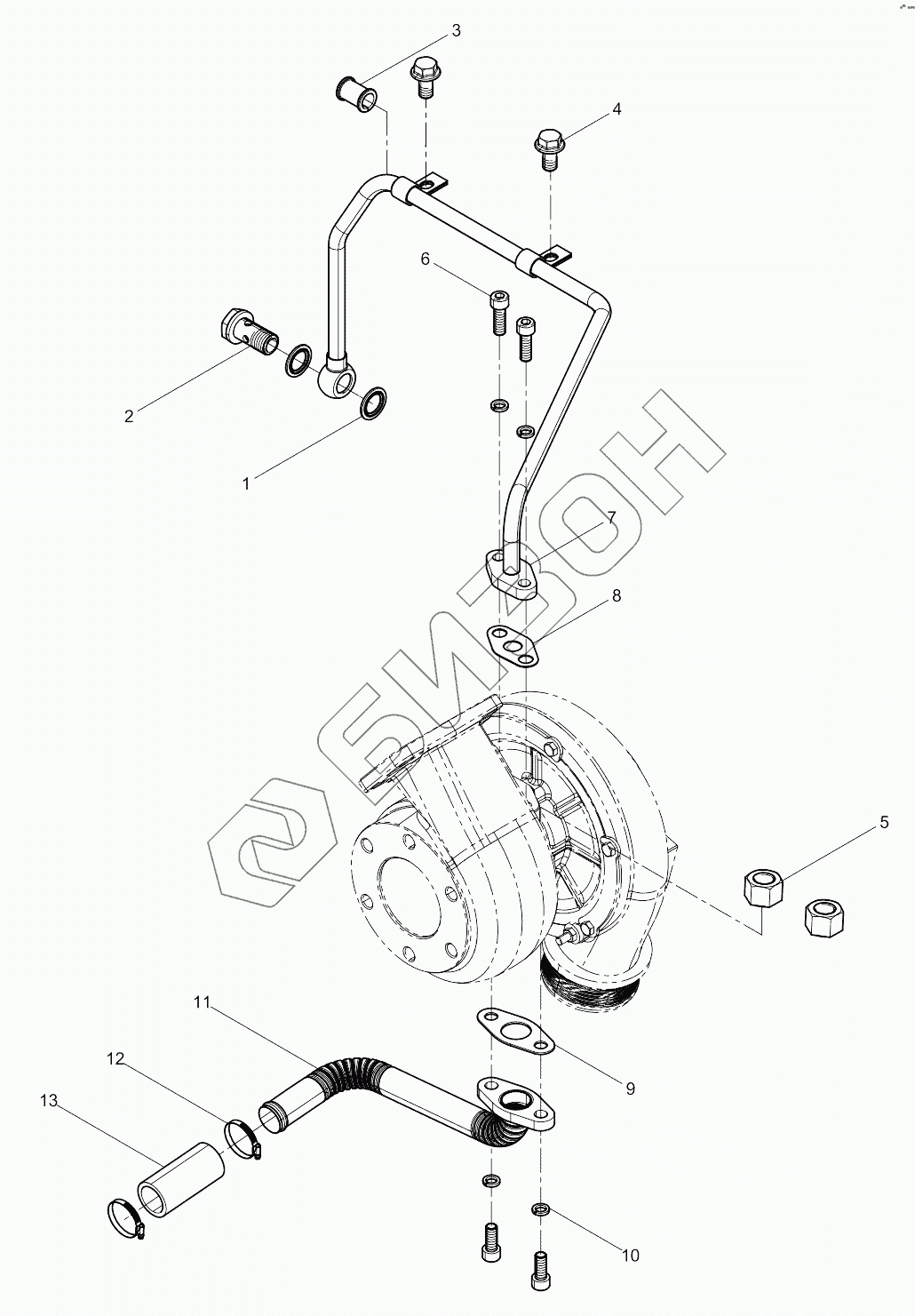 | 7 | 1000735208 | Turbocharger Oil Pipe Assembly |