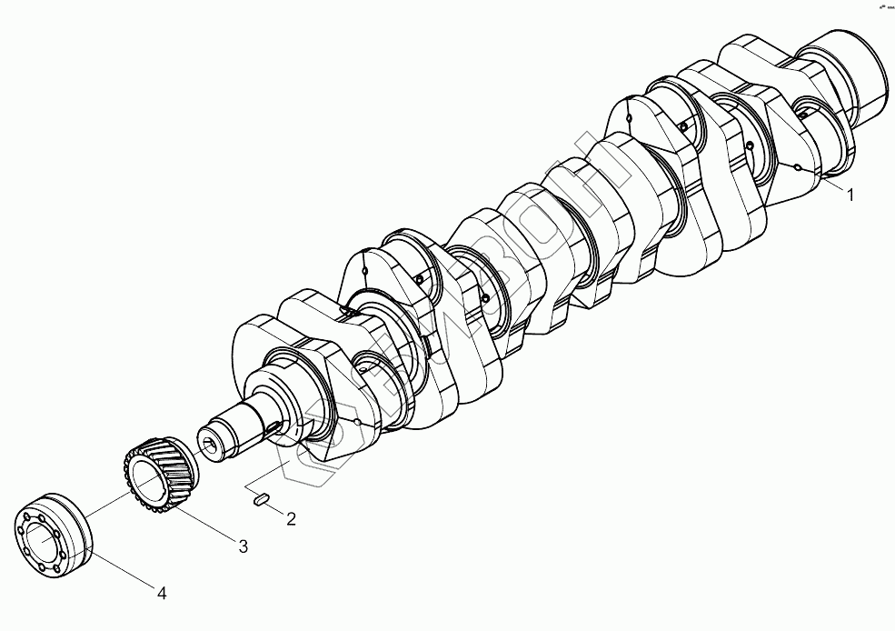Графический каталог запасных частей к технике: Weichai 6M11 DHM16D0002. Crankshaft Subassembly
