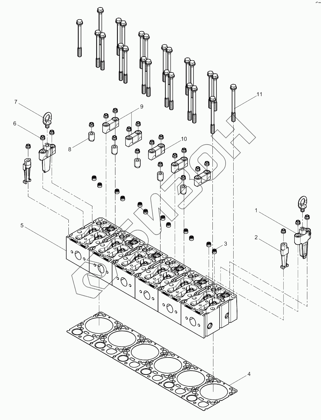Графический каталог запасных частей к технике: Weichai 6M11 DHM16D0002. Cylinder Head Group