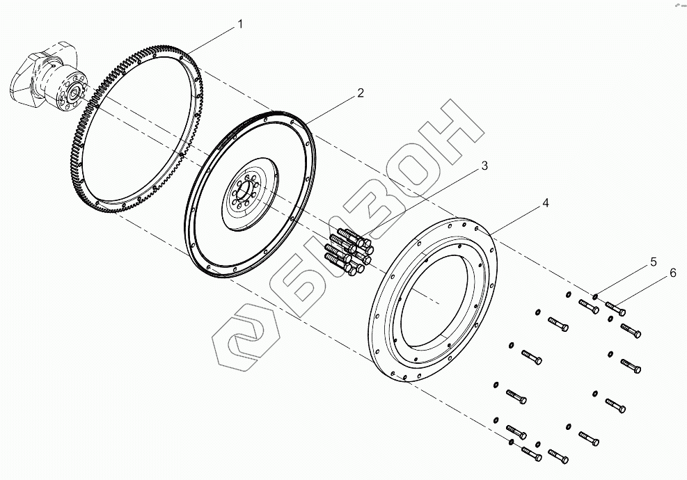 Графический каталог запасных частей к технике: Weichai 6M11 DHM16D0002. Flywheel Group